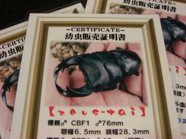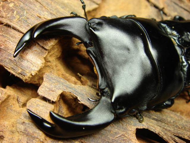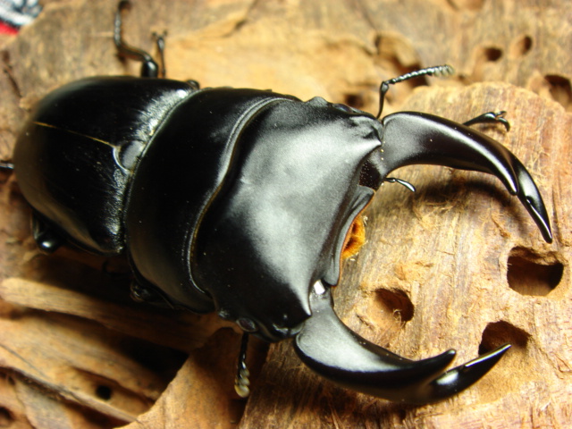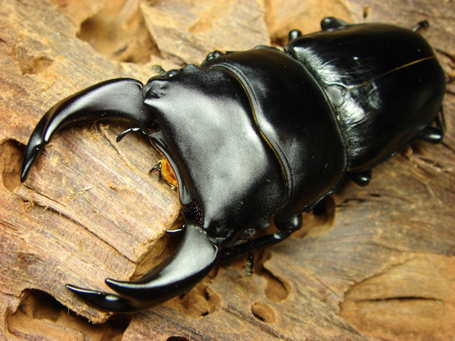 【学名】Dorcus grandis formosanus 【血統】zeus-tai 【産地】秘密 【個体】♂71mm 2008年5月上旬羽化[CBF2]顎幅(5.3~5.5㎜) ♂74mm 2008年6月上旬羽化[CBF2]顎幅(5.7~5.9㎜) ※羽パカになっちゃいました。 台湾オオクワガタは大好きで毎年少ない数ですが、飼育してます。 やはり、このスタイルたまらない!こいつは、昨年幼虫で手に入れたのだが、結構、期待通りのスタイルです。 羽パカが惜しい(私の管理ミスが要因)この、男前は来期の種親としてしばらく館のボディーガードを担ってもらいます。